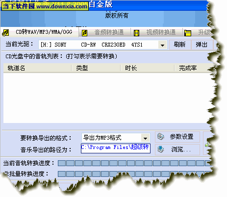 ● CD抓轨功能上全面彻底更换内核,新的内核免除ASPI的安装,免除了再重启系统的麻烦。再次全新CD转换内核异常强大:支持IDE/USB/SCSI/FireWire等几乎所有光驱的全面抓轨高性能转换;可直接从CD转为WAV/MP3/WMA/OGG等诸多格式,比原来支持格式更多,同时各种格式支持更详细的参数设置,由于增加了直接转换,让音质绝对一流;新的CD转换内核还采用了并发大面积光盘抓轨、集中转换、智能纠错等先进技术,使得转换速度达到目前CD转换真正最快最高水平!