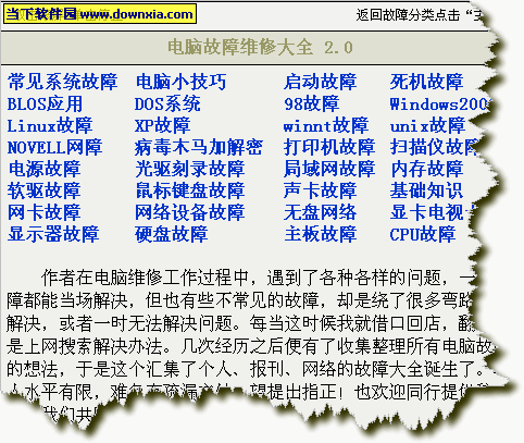 电脑故障维修大全 V2.0 EXE电子书