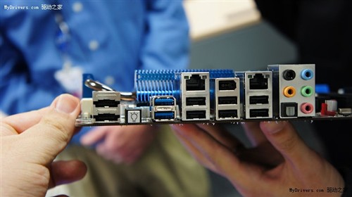 背部输入输出接口,两个蓝色的就是USB 3.0