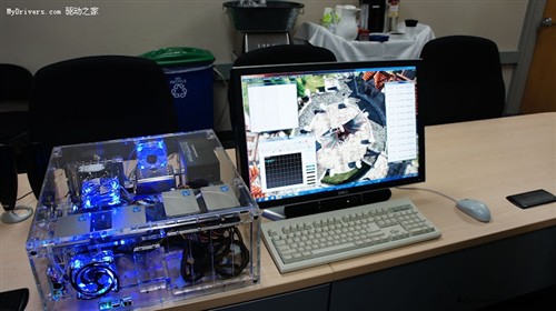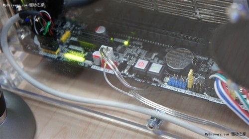 现场运行展示,搭配Core i7-980X六核心处理器和原装散热器超频到4.2GHz。