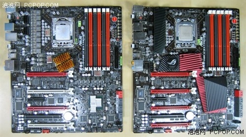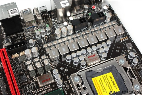如果说这张的灵魂在哪里,那么必然要数供电部分,Rampage III Extreme在供电方面采用了数字模拟混合供电,数字供电芯片来保证电压的精准,而模拟供电部分则在极限超频时给予暴力的电力来催生处理器的高频记录。