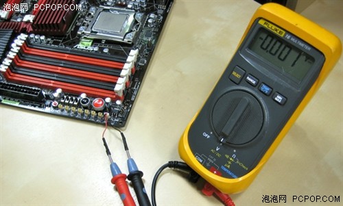 从上图我们看到Rampage III Extreme配有全面的电压测量点,另外还设计了四个管理PCI-E通道的开关。