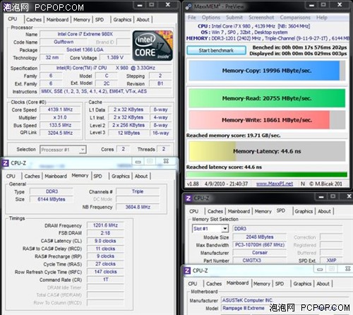 内存插槽方面Rampage III Extreme采用独有单边卡扣设计,方便用户安装,提供了红黑两色共6条DDR3内存插槽,支持三通道DDR3 2000/1600/1333内存,最大支持24GB容量,内存部分还提供了独立供电。