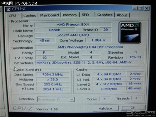 近日,韩国汉城玩家namegt采用最新的羿龙2双核555黑盒版搭配映泰TA870+主板,开4核后再超频至6.879GHz并且通过Super pi 1M测试,9.907s的成绩成为了现今AMD最快的Super pi 1M记录。
