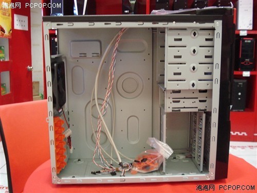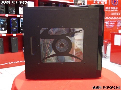 采用了侧开门式结构,可以隐藏光驱以及功能按钮等部分,当然还为散热提供了保障。机箱符合INTEL的TAC2.0散热规范,为CPU显卡的硬件提供了散热辅助。