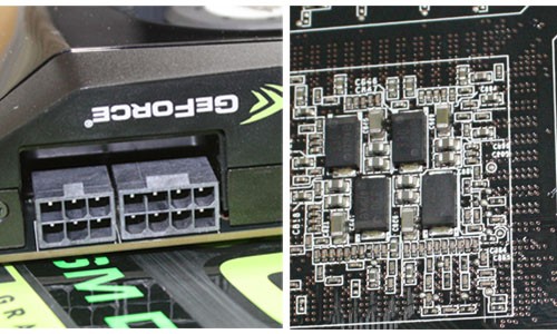 翔升GTX580金刚版1536M D5显卡核心/显存频率为772/4008MHz,显存规格为1536M/384bit,超大规格的显存速度为0.4ns。翔升GTX580显卡配备6+2相核心/显存分离式供电,并设有6-pin+8-pin外接电源接口。供电电路上的用料,超薄贴片式电感、超薄贴片式八角MOS管、高分子电容、全固态电容等极品用料一种不缺,可保证显卡运行的稳定性。