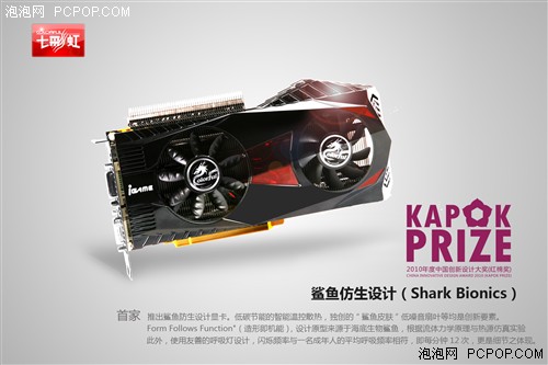 据了解,此次七彩虹科技揽获“红棉奖”的显卡是iGame460 烈焰战神X D5 1024M,此卡率先采用“鲨鱼仿生学”的设计理念,上市后获得了大量用户的青睐。从获奖情况可以看出,作为显卡业界唯一一款获奖的产品,七彩虹多年来在工业设计、产品研发端的努力终于得到了认可。
