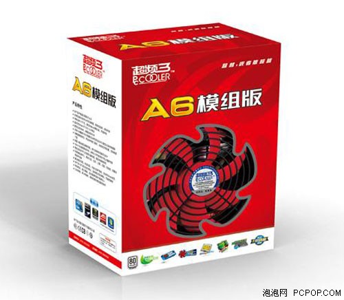 A6模组版电源采用绚丽的红色外包装,镂空设计能够看到我们熟悉的