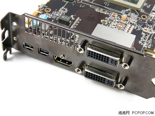 接口方面,该卡提供了双Mini DP、HDMI及两个DVI接口,为了能够确保高质量的视频输出,输出端口特设了电磁屏蔽罩,有效避免了杂波的干扰。
