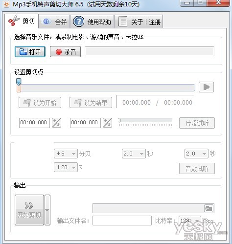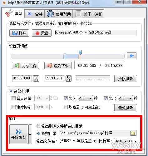 在开始教程之前,需要让大家里了解一下Windows Phone7.5系统支持的铃声规格,Windows Phone7.5系统支持MP3和WMV格式的音乐文件作为铃声,并且文件容量需要保持在1MB之内,音乐时间长度把控在40秒以内,音频码率则最高只支持到320kbps(在铃声剪切大师中,320kbps中的最高规格)。当了解到这些后,我们开始制作属于自己的铃声吧!