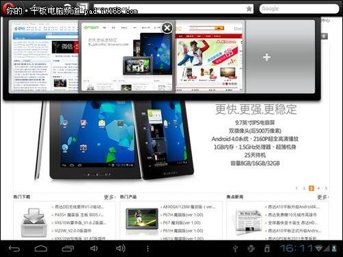 平板是图文并茂的电子书,是资源丰富的游戏机……没错,平板就是这么多才多艺。不过别忘了,平板是随着无线网络的发达面世的,网络功能特别是上网浏览,是所有用户都不会忽视的重要功能。在大尺寸平板上,用户的浏览体验已经非常接近PC,更有别具一格的操作乐趣。本期教程笔者依然以国内市场占有率第一品牌昂达电子旗下9.7英寸旗舰平板“Vi40精英版(Android4.0.3系统)”为平台,推荐几个不错的网络浏览器,同时和大家分享一些网络浏览的小技巧,昂达其它型号平板均可运行。