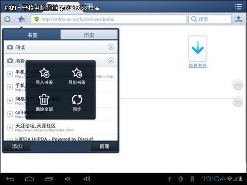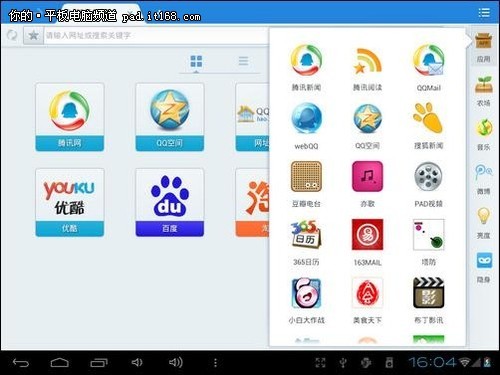 ,这也是昂达平板所内置的一款浏览器。它作为国内市占率最高手机浏览器,UC在平板上也有着优良表现。经过长期发展,UC的功能已经非常全面了。包括视频播放、网站导航、书签同步、下载管理、个人数据管理、智能预读、分页浏览……基本上你能想象到的功能它都有。