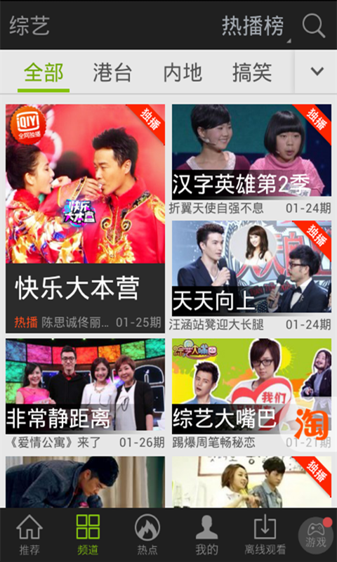 分频道视频浏览,提供最新、热播、好评三种排序方式。