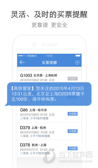 高铁管家,听名字就知道又是一款常见的手机订购火车票的应用。该应用不同于其他软件的地方在与买票提醒功能,可以在票量紧张时通知用户,让你不会错过重要的车票。如果你经常要用火车出差、旅行,那小编推荐你下载这款免费的手机购票应用。