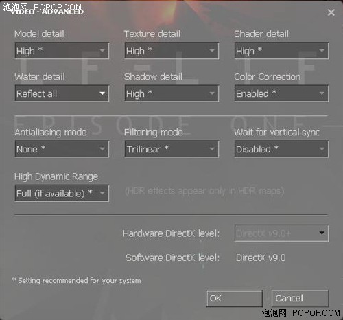 最新的半条命2第一章依然使用了Source引擎,但Valve一直都对引擎做改进和优化,Source引擎使用了Int16格式的HDR,因此DX9显卡都可以完美开启HDR+AA特效,但精度范围不如FP16HDR。