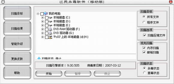 江民杀毒软件(移动版)是专为使用移动磁盘查杀病毒的用户量身定做的一款计算机安全产品。用户在使用时无需安装,只要拷贝到移动存储器(MP3、U盘、移动硬盘)上,输入产品序列号即可使用。
