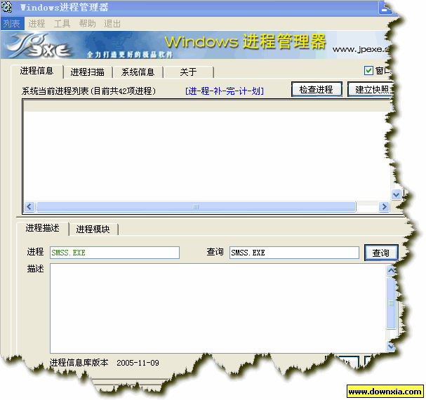 您是否想了解系统中的每个进程是做什么用的?您是否担心系统中潜伏着病毒或木马的危害?Windows进程管理器可以帮助您清楚地了解系统中的进程信息,它强大的进程信息库收录了几乎全部的系统进程和许多常见应用软件进程,以及病毒和木马的进程……Windows进程管理器除了提供进程查询功能外,还提供了强大的进程管理功能和系统监视功能。它一定是你了解、管理进程和维护系统安全与稳定的好帮手