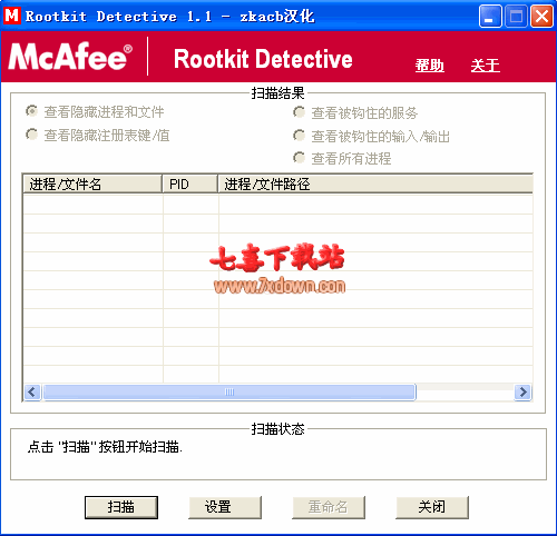 McAfee Rootkit Detective V1.1 Beta(清除劫持系统软件程序)汉化绿色版