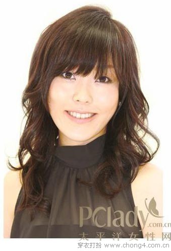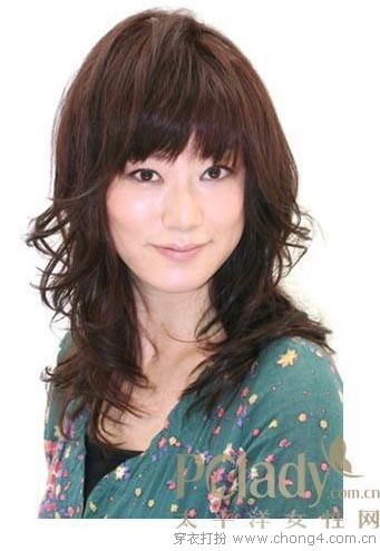 05 长长的厚刘海,下面开始卷曲的头发,突出你好看的下巴,让你更加的清爽。
