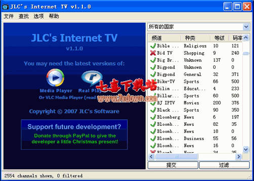 14、JLCs Internet TV 1.1(收看国外1000个电视台的节目)多国语言绿色免费版