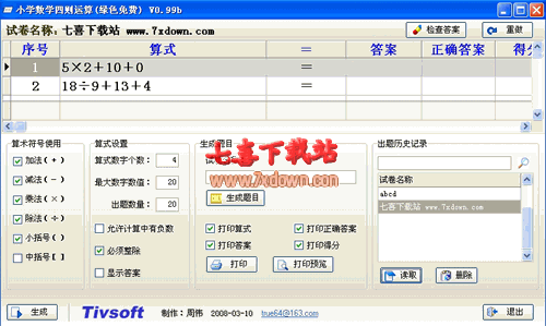 27·[少儿教育] 小学数学四则运算(可直接做题或打印成试卷)v0.99b绿色免费版    994KB