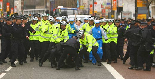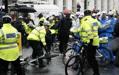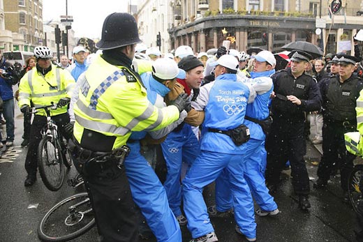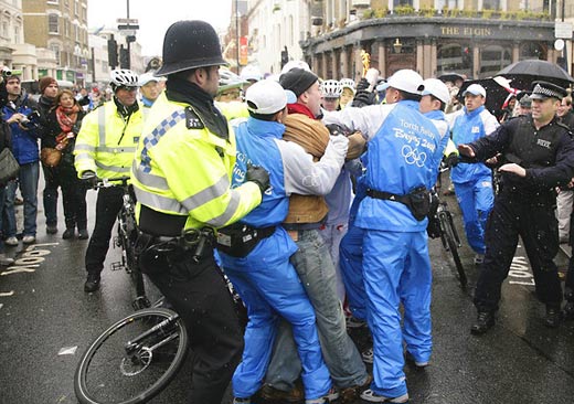 4月6日,英国伦敦警方逮捕了极少数企图干扰破坏奥运圣火传递的“藏独”分子。 新华社记者 戚恒 摄