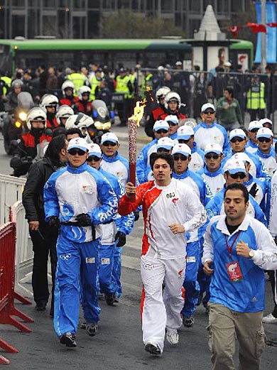 由此可见,圣火护卫队堪比田径比赛中的十项全能运动员。在北京奥运圣火全球传递的4个多月时间里,人们不仅能欣赏到火炬手和助跑手的风采,也将领略这支承担重任的圣火护卫队的飒爽英姿。