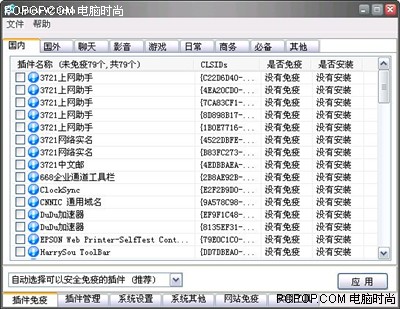 IE插件屏蔽在除了屏蔽插件的基本功能之外,更有令人侧目的创新!99.99%模拟Windows XP SP2的IE加载项功能,使2000以上Windows系统也可以具有Windows XP SP2的IE加载项功能,显示当前已安装的插件并可卸载插件