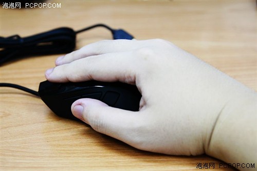 这只鼠标设计的相当对称,不论是左手或右手握上去都颇舒适。只是以左手来控制鼠标的话,左侧的三颗功能键就必须以无名指及小拇指来操作(练过吉他OK的)。