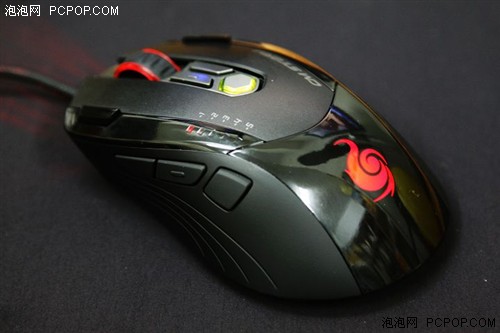 黑色本体搭配红色灯光是相当好看的,不过,在切换配置文件后出现的局部绿色或局部黄色的配色,感觉颇不搭。另外,鼠背上厂商标志的灯光也会随着闲置而黯淡下来。