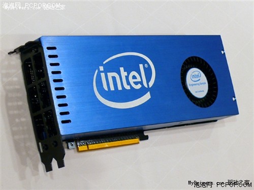 从实物照片上可以看到,Knights Ferry如民用显卡般基于PCI-E 2.0接口加辅助供电的设计。而其外观已经和当初宣布时的样子有了些许变化,曾经存在的显示输出接口(当时估计是和Larrabee显卡共享设计)已经不见了,更加接近于Tesla或FireStream。