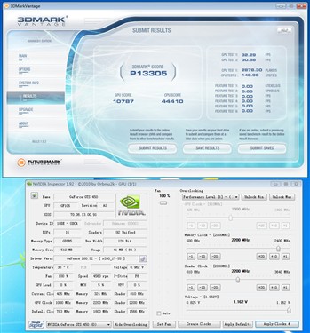 得宜于良好的供电和散热设计,速配2 GTS450 DDR5 V1024小牛版拥有强劲的超频性能,核心电压提升到安全电压范围内的1.162V,速配2 GTS450 DDR5 V1024小牛版在风冷下的极限频率可达到1000/2200/4400MHz的水平下,此外核心与流处理器频率的比例由默认的1:2提高至1:2.2的水平下,性能提升幅度得到进一步的扩大,并顺利通过3DMark Vantage的相应测试。