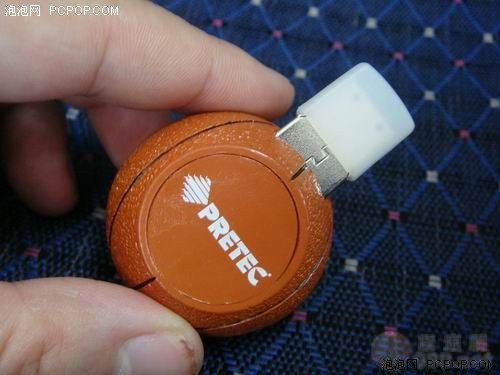 完全按照篮球外形缩小的U盘,不过外表是硬质塑料的,背面的做工有些粗糙,整体的重量也有些偏重,不易于携带。除了外形像篮球之外,固定的包装也是缩小版的篮球场地,很有意思,采用篮球外观作为U盘的外形,这算是比较有创意的想法,不过在细节处理上,pretec似乎还有不少可以改进的方面,特别是外观质感。