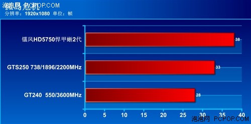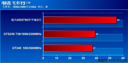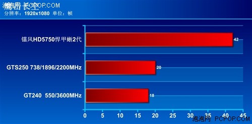 在我们的实际测试中,在当前最新的的街头霸王4、孤岛危机、鹰击长空等游戏大作中,HD5750显卡720个流处理器的优势依然强劲,在当前主流的1680X1050分辨率下,完全击败GTS250!