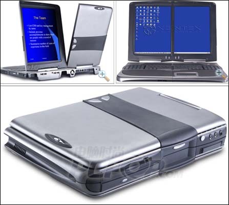 200)。而且屏幕可以在一定范围内上下翻转,让使用者随时调整到最佳角度。这也是首款能调整显示器角度的便携电脑。不过很遗憾的是,该便携电脑并没有配置电池。