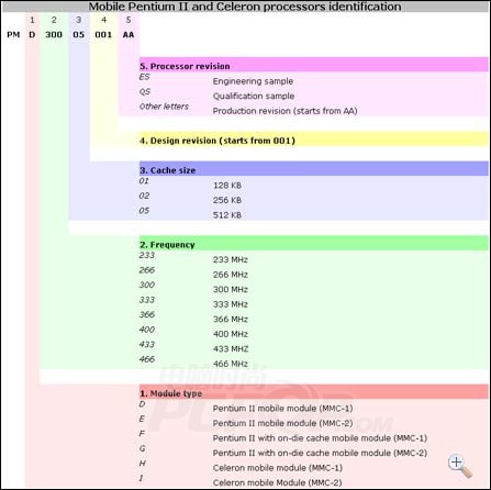 1998年,Intel公司的移动版PII/Celeron正试问世,这让笔记本的性能又一次得到了飞跃。这种移动版的CPU封装大家很少见到,这里有幸获得大图写照让大家一览其风采。下表则为移动处版PII处理器的编号定义详细分析。同年AMD也正式发布了它首个移动处理器Mobile