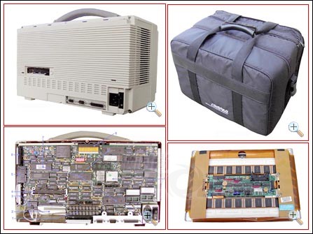 该款便携电脑重量也是十分夸张的,高达11公斤。当闭合的时候,还蛮像现在我们使用的分体空调室内机。购买这款便携电脑也配备了皮包,不过那更像个行李箱。大家可以通过放大拆解图来观看其内部构造。