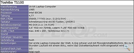 200,重量为4.1公斤,很遗憾的是它也需要依靠外接电源运行。也就是这款笔记本的问世,开始了东芝公司在笔记本业界的20风雨路程。不过这里有些令人意外的是,美国电脑博物馆的资料中,居然没有这款笔记本电脑的身影,而其后续版本T1000则记录在案(T1000发布于1987年)。