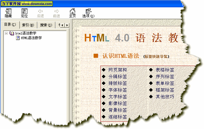 用比较通俗的语言与具体制作实例分析网页制作中常用的HTML语法,初学网页制作者有用,已编译成CHM格式