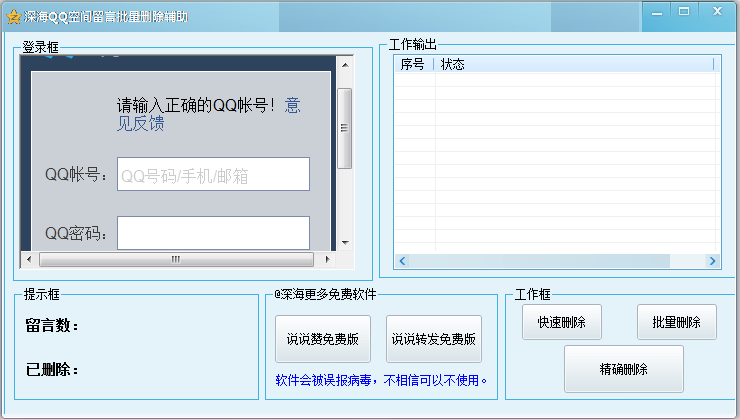 软件名称:QQ空间留言批量删除辅助 绿色版