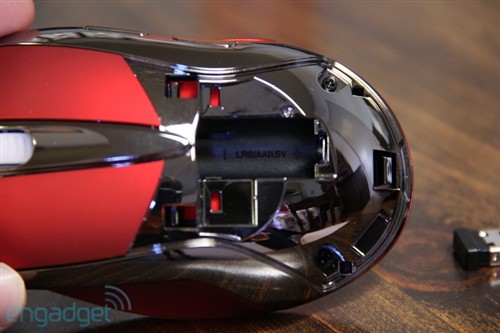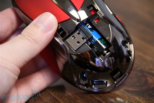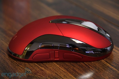 从正面来看,Chameleon X-1就是一款7按钮配置时尚无线鼠标。它采用光学传感器,400/800/1000/1200/1600MHz五档可调分辨率,回报率125MHz,采用2.4GHz无线传输技术,兼容Windows2000/XP/Vista/win 7操作系统。