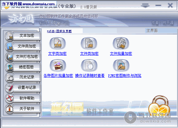 本软件是采用的最安全可靠的硬性加密方式对目标进行加密的,以安全、保密、科学、方便为原则。加解密采用国际算法和自定义算法来进行,多密钥、多重算法变化过程,支持文字、文件、批量文件、文件夹、图片批量加解密、支持多线程,加密后的图片可以通过软件自带的密图浏览器直接安全的浏览图片,可缩放等。人性化的提示和帮助说明以及软件操作过程信息号查寻,让您了解软件每一步的操作意思。而且专业定制版和企业版中还提供了“文件型密钥”、“多重验证”、“带验证图片”“反常规加密法”等多种功能和特有独创的加密算法。