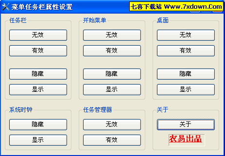 菜单任务栏属性设置,可是使您的任务栏、开始菜单、系统时钟、桌面、任务管理器在有效与无效、隐藏与显示之间变换,是一个非常实用的系统小工具。