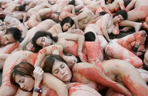 » 巴塞罗那200人裸体抗议皮草残酷交易