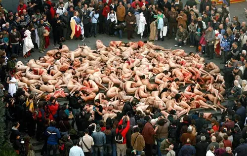 将近200名动物保护主义者裸体出现在西班牙巴塞罗那大教堂前,向人们展示仅仅制作一件皮草大衣就需要多少动物。这项活动旨在唤醒人们保护动物的意识,提醒大家皮草背后隐藏的残酷交易。此次活动有望成为规模最大的裸体抗议皮草业活动。