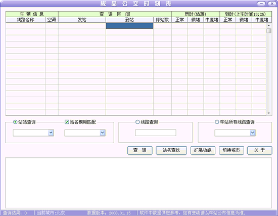 软件名称:极品公交时刻表 V12.06.06 绿色免费版 软件大小:404KB 软件语言:简体中文 软件类别:国产软件/免费软件/行业软件 运行环境:Win2003, WinXP, Win2000, Vista, Win7 软件简介: 极品公交时刻表,让你了解所有公交信息,软件纯绿色,无需安装,目前仅包含北京信息,将陆续收录全国各地信息。 极品公交时刻表 V12.06.06 绿色免费版 下载 极品公交时刻表 V12.06.06 绿色免费版 迅雷下载 下载页面:http://www.downxia.com/downinfo/4037.html