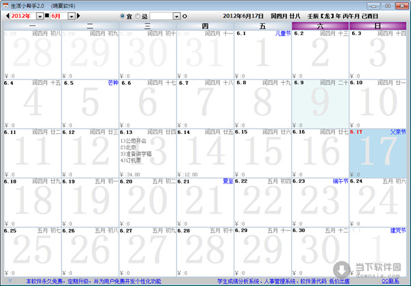 软件名称:生活小帮手|生活小帮手 2.0 绿色免费版_免费的日历软件 软件大小:584KB 软件语言:简体中文 软件类别:国产软件/免费软件/时钟日历 运行环境:Win2003, WinXP, Win2000, Vista, Win7 软件简介: 生活小帮手是一个永久免费的日历软件,功能强大实用,是生活中不可多得的好帮手。 生活小帮手|生活小帮手 2.0 绿色免费版_免费的日历软件 下载 生活小帮手|生活小帮手 2.0 绿色免费版_免费的日历软件 迅雷下载 下载页面:http://www.downxia.com/downinfo/23097.html