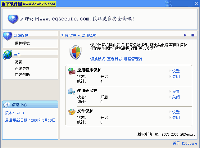 EQSecure for System 是系统安全防火墙,可以保护计算机操作系统,拦截危险操作,避免类似病毒和间谍软件的安全威胁.包括进程,注册表以及文件.