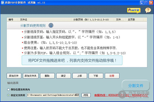 软件名称:迅捷pdf分割软件|迅捷pdf分割软件 V1.11 官方最新版 软件大小:39913KB 软件语言:简体中文 软件类别:国产软件/免费软件/文件分割 运行环境:Win2003, WinXP, Win2000, Vista, Win7 软件简介: 迅捷pdf分割软件是一款专业的PDF分割器,可以把一个完整的PDF文件分割成很多个段落,用户可以自定义切割的pdf文件大小,甚至可以将每一页都切成一个pdf文件。 迅捷pdf分割软件|迅捷pdf分割软件 V1.11 官方最新版 下载 迅捷pdf分割软件|迅捷pdf分割软件 V1.11 官方最新版 迅雷下载 下载页面:http://www.downxia.com/downinfo/52751.html