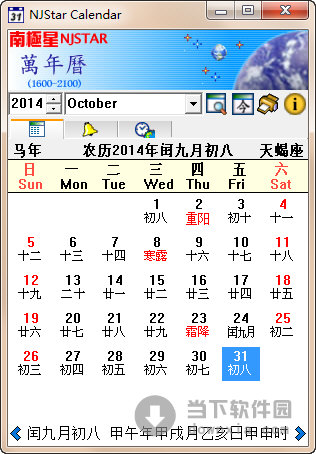 软件名称:南极星万年历|南极星万年历 V2.38.13928 官方版 软件大小:947KB 软件语言:简体中文 软件类别:国产软件/免费软件/时钟日历 运行环境:Win2003, WinXP, Win2000, Vista, Win7 软件简介: 南极星万年历是一个非常有特色的桌面万年历软件,它拥有基本的万年历功能同时,还自带了时间报时功能,万年历里的各种节日也标注的非常详细,而且还能将时间日程安排打印出来。 南极星万年历|南极星万年历 V2.38.13928 官方版 下载 南极星万年历|南极星万年历 V2.38.13928 官方版 迅雷下载 下载页面:http://www.downxia.com/downinfo/52754.html